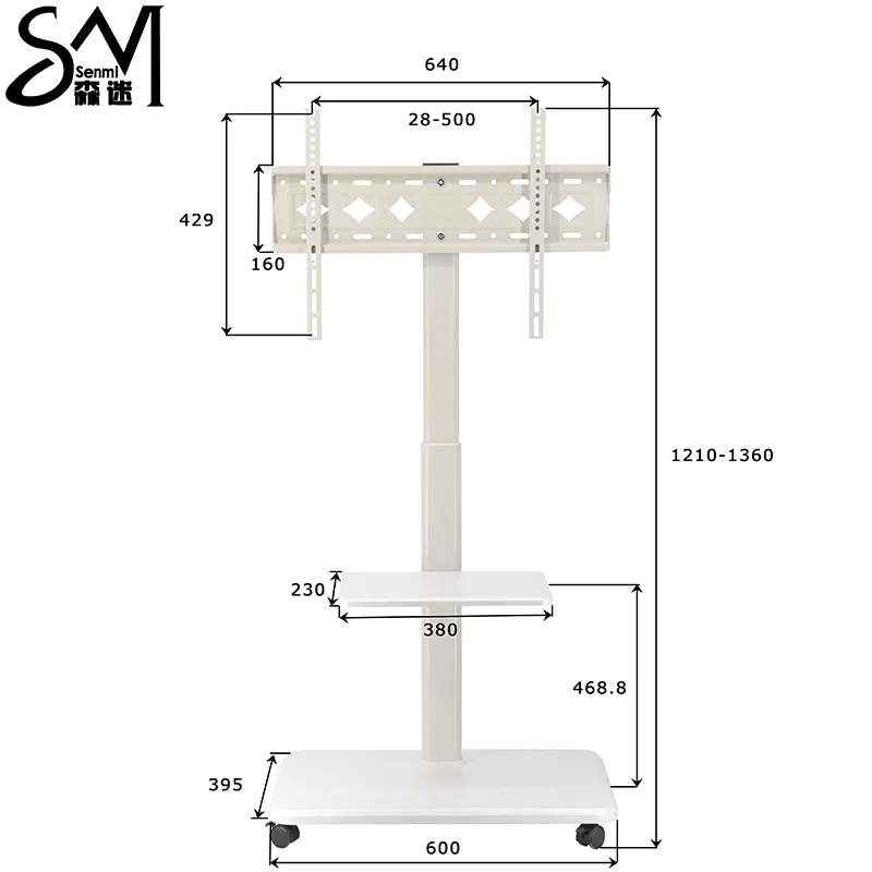 Стойка для телевизор YW04 – это высококачественная модель с текстурой дерева, разработанная специально для использования в помещениях. Её эстетичный дизайн и высокая функциональность снискали ей широкую популярность. Деревянная тележка подходит для телевизоров с диагональю экрана от 32 до 65 дюймов, с максимальным размером крепления VESA 600*400 мм. Максимальная грузоподъёмность напольной тумбы составляет 35 кг, что соответствует требованиям большинства телевизоров соответствующего размера, представленных на рынке. Благодаря регулируемой высоте от 1210 до 1360 мм, тумба на колёсах подходит для различных вариантов использования, включая дома, в офисе, на конференциях и в учебных заведениях. Привлекательный внешний вид, широкий спектр применения, конкурентоспособная цена и универсальная функциональность мгновенно сделали её хитом продаж.