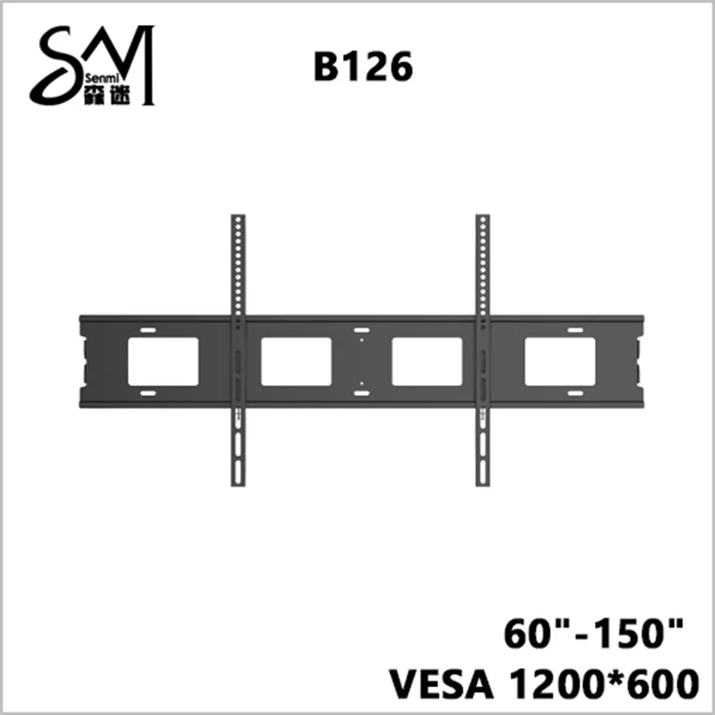 Модель B126 представляет собой фиксированное крепление для телевизоров большого размера, подходящее для телевизоров с диагональю 60"-150", которое имеет толщину 2,4 мм и грузоподъемность 200 кг. Максимальный стандарт VESA данного усиленного крепления составляет 1200*600 мм. Крепление для телевизора большого размера выглядит отлично и обладает хорошим качеством благодаря электростатическому напылению. Сверхширокое крепление B126 является универсальной моделью, которая подходит для большинства брендов телевизоров в большинстве сценариев использования. Холоднокатаный лист SPCC с электростатическим напылением обеспечивает усиленные характеристики и стабильность данного крепления для телевизора большого размера.